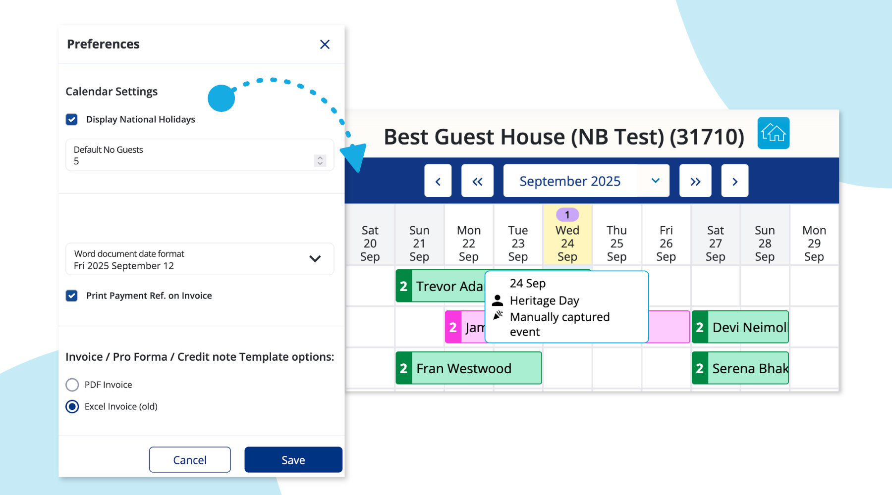You can opt in to automatically add public holidays to your online calendar, matched to your property’s location.