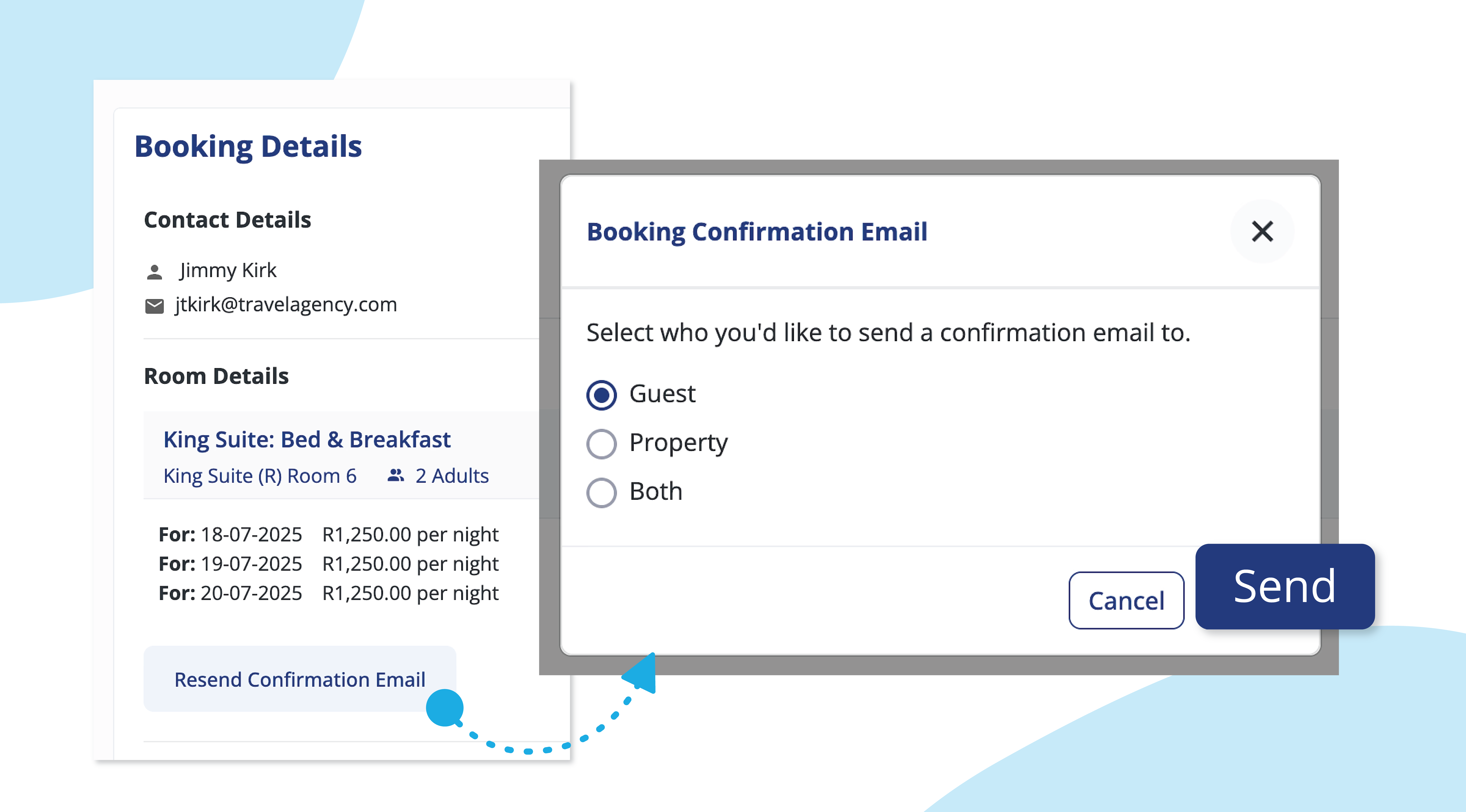 You can now resend a confirmation letter from the booking and payment status page and choose who receives it—you, your guest, or both. No more guessing whether the email landed.
