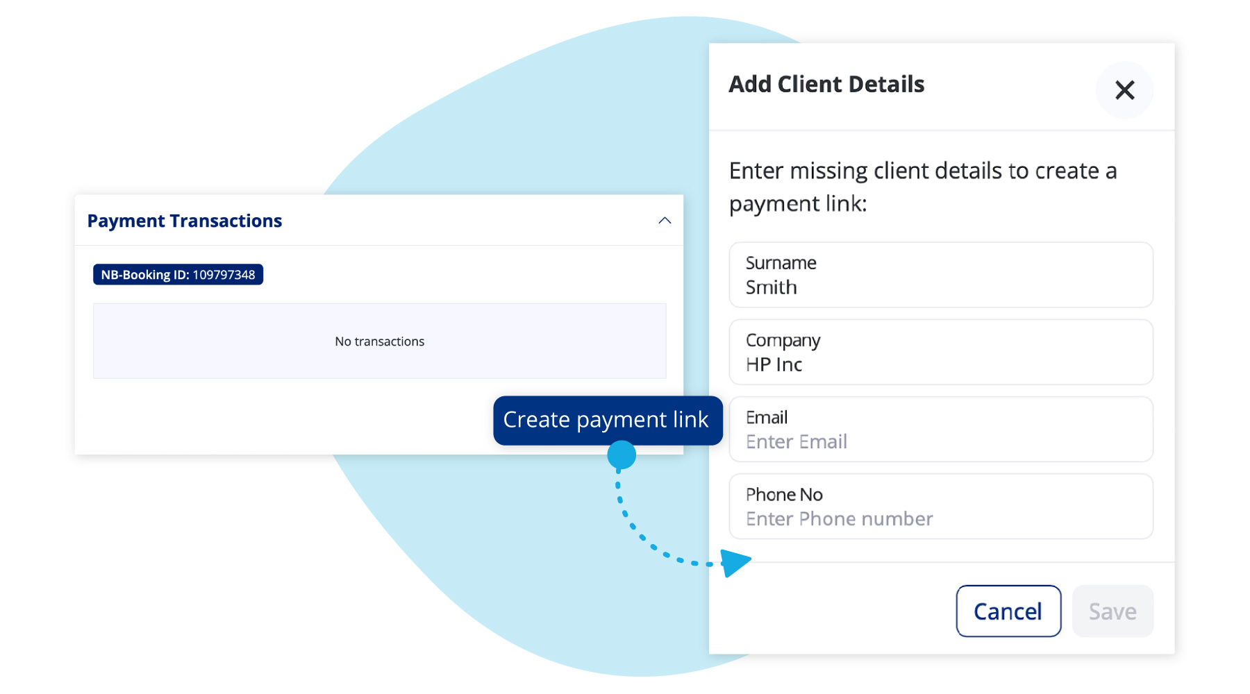 Create payment links faster on the booking and payment status page. You can add client contact details right there, without updating the calendar first.