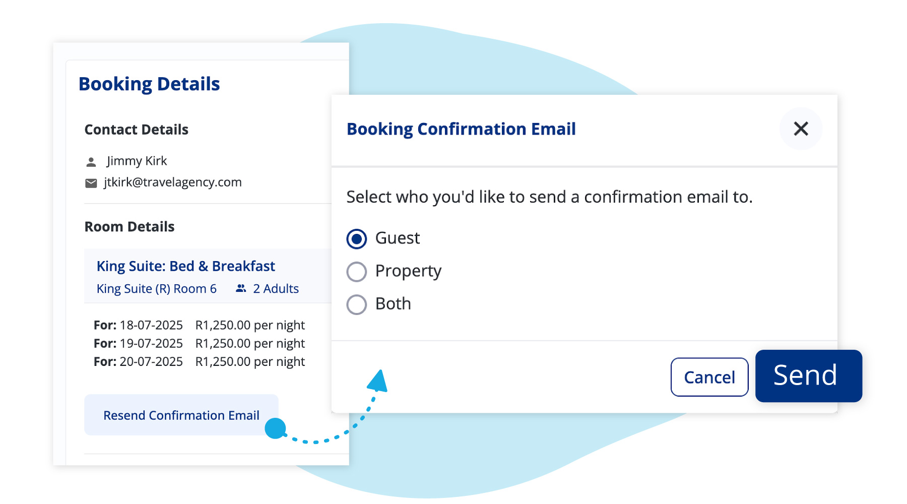 You can now resend a confirmation letter from the booking and payment status page and choose who receives it—you, your guest, or both. No more guessing whether the email landed.
