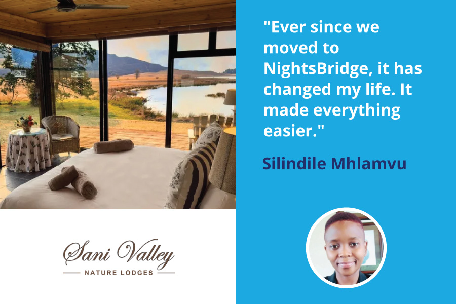 “Suddenly,” says Silindile, “Everything was done online. Before, we had a physical diary. Bookings, invoices – everything – was done manually. NightsBridge has reduced my workload!”