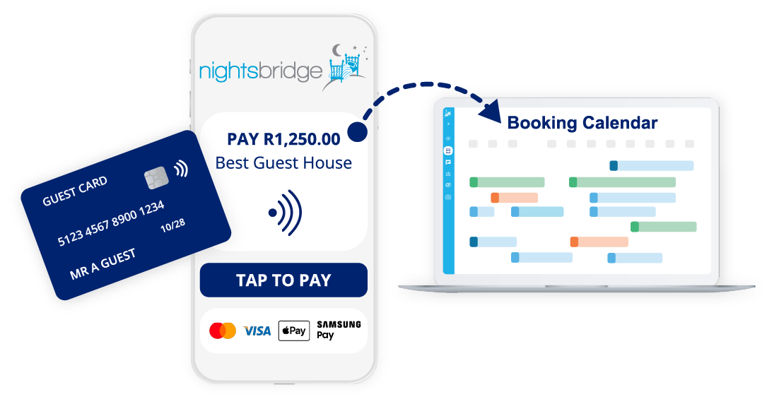 Payments taken via NightsBridge Tap use secure, industry-standard processing and work hand‑in‑hand with your NightsBridge setup. You know which booking each payment belongs to, and we take care of the technical and compliance side in the background.