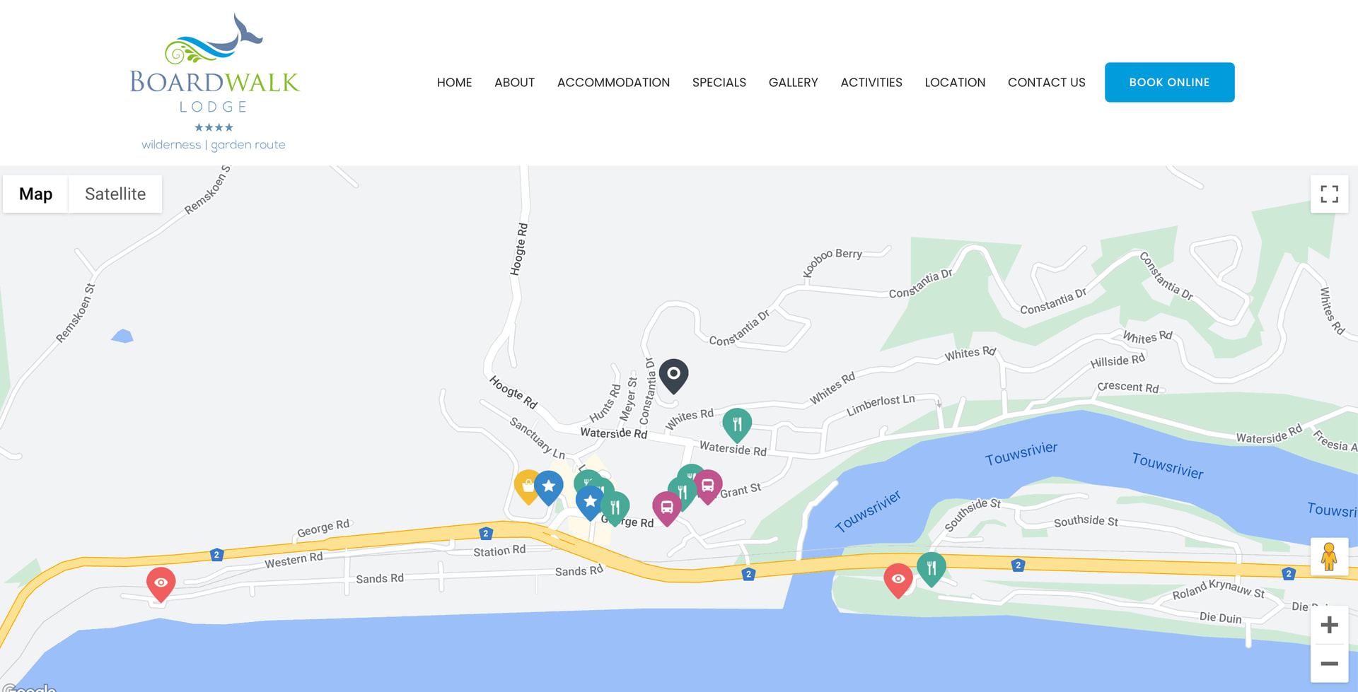 Boardwalk Lodge makes it clear that the property is in close proximity to restaurants, services and grocery stores in the quaint Garden Route Town of Wilderness.
