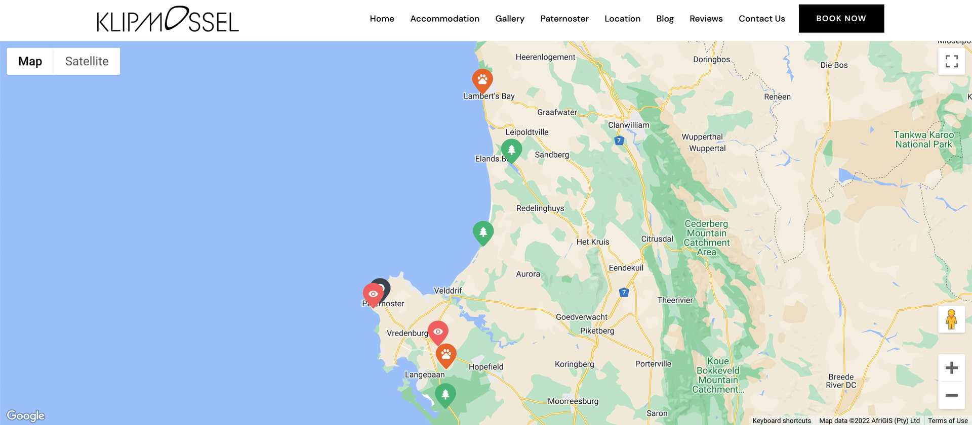 Klipmossel in Bekbaai highlights the nature and wildlife sights close to their property on their map.
