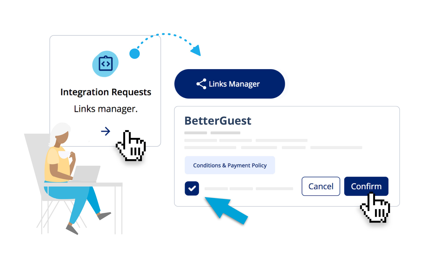 In your Links Manager, you can initiate a connection request to set up BetterGuest. Once that is processed, you will be able to use BetterGuest from within your NightsBridge set up. The BetterGuest team will set up a call with you to give you an overview on how to use the functionality and how to get started.